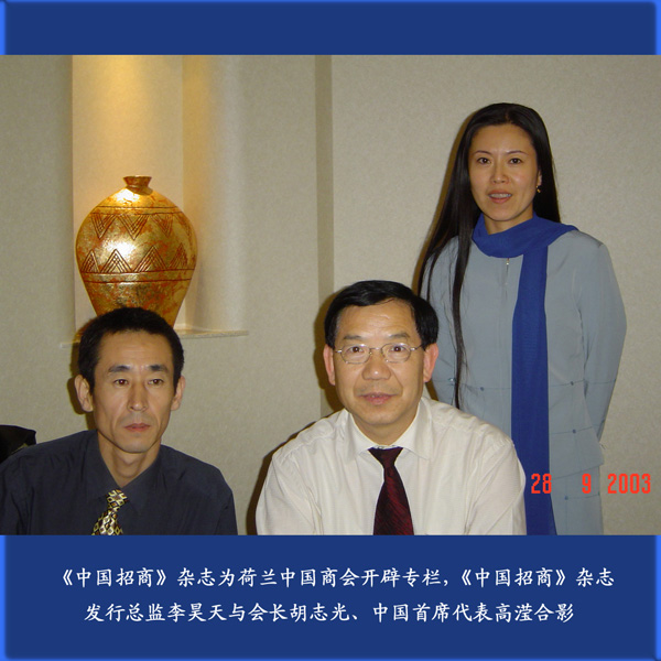 2003年9月28日在中国大饭店,在荷兰中国商会中国首席代表高滢的安排下,《中国招商》杂志社发行总监李昊天先生、编辑部记者秦丽女士与荷兰中国商会会长胡志光先生进行了友好会谈。